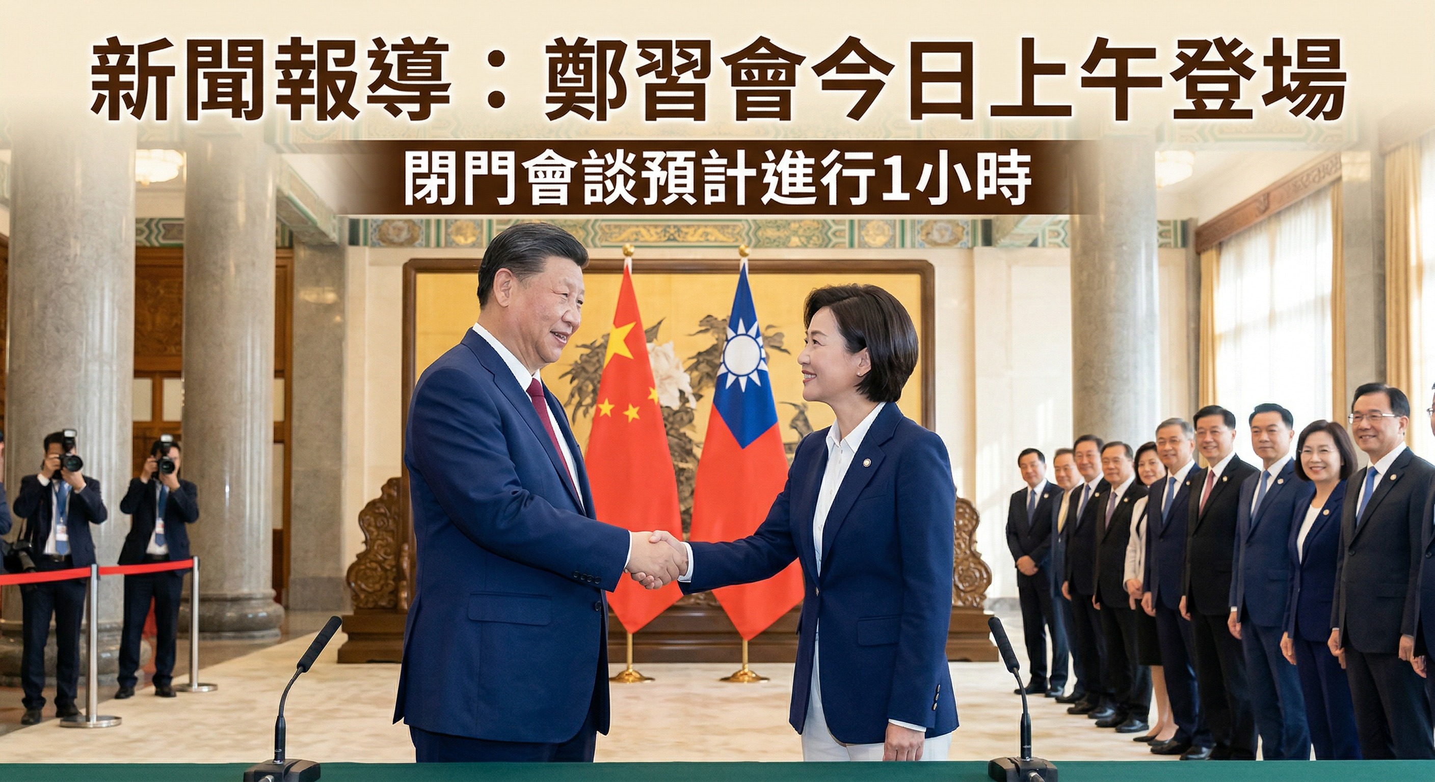 據媒體報導,「鄭習會」將於上午約10時舉行,流程包括雙方致意、握手寒暄,隨後進入會談場地發表簡短談話,時間約10分鐘。