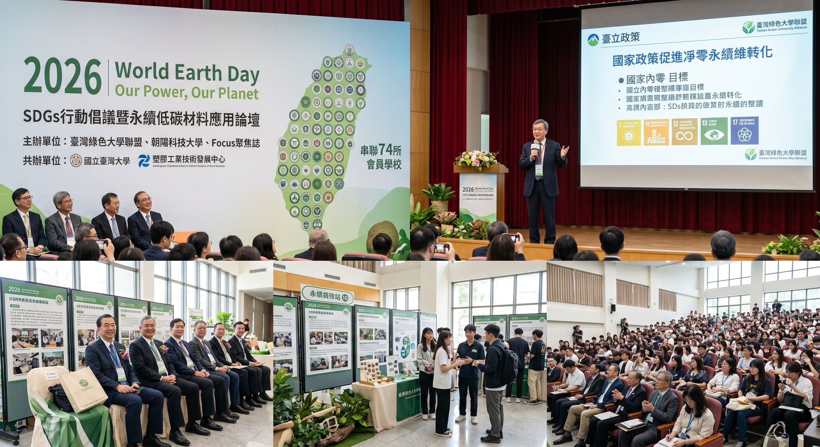 響應2026年世界地球日,臺灣綠色大學聯盟攜手朝陽科技大學與Focus聚焦誌共同主辦「SDGs行動倡議暨永續低碳材料應用論壇」,並由國立臺灣大學及塑膠工業技術發展中心協辦,集結產官學媒多方力量,共同探討淨零轉型與永續發展的關鍵路徑。